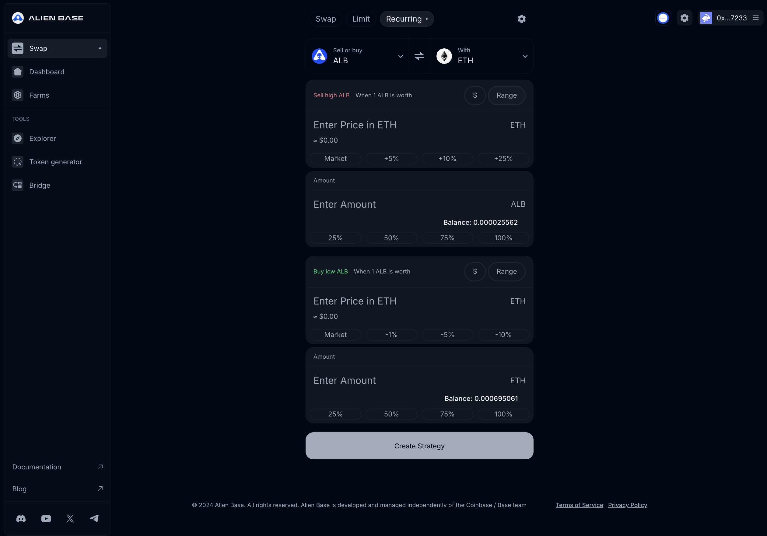 This guide walks you through creating a strategy on [app.alienbase.xyz](https://app.alienbase.xyz)