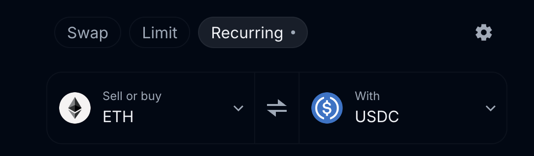 <figure><img src="https://2071118767-files.gitbook.io/~/files/v0/b/gitbook-x-prod.appspot.com/o/spaces%2FsTezfw4MnbiXPiGDX138%2Fuploads%2FQMHfyWxJwmbCgp2mMhxq%2FScreenshot%202024-09-18%20at%2020.14.49.png?alt=media&#x26;token=e1953e25-e70a-4afb-b11d-20ca5820b53f" alt=""><figcaption><p>Alien Base's Swap page on Recurring Order form</p></figcaption></figure>